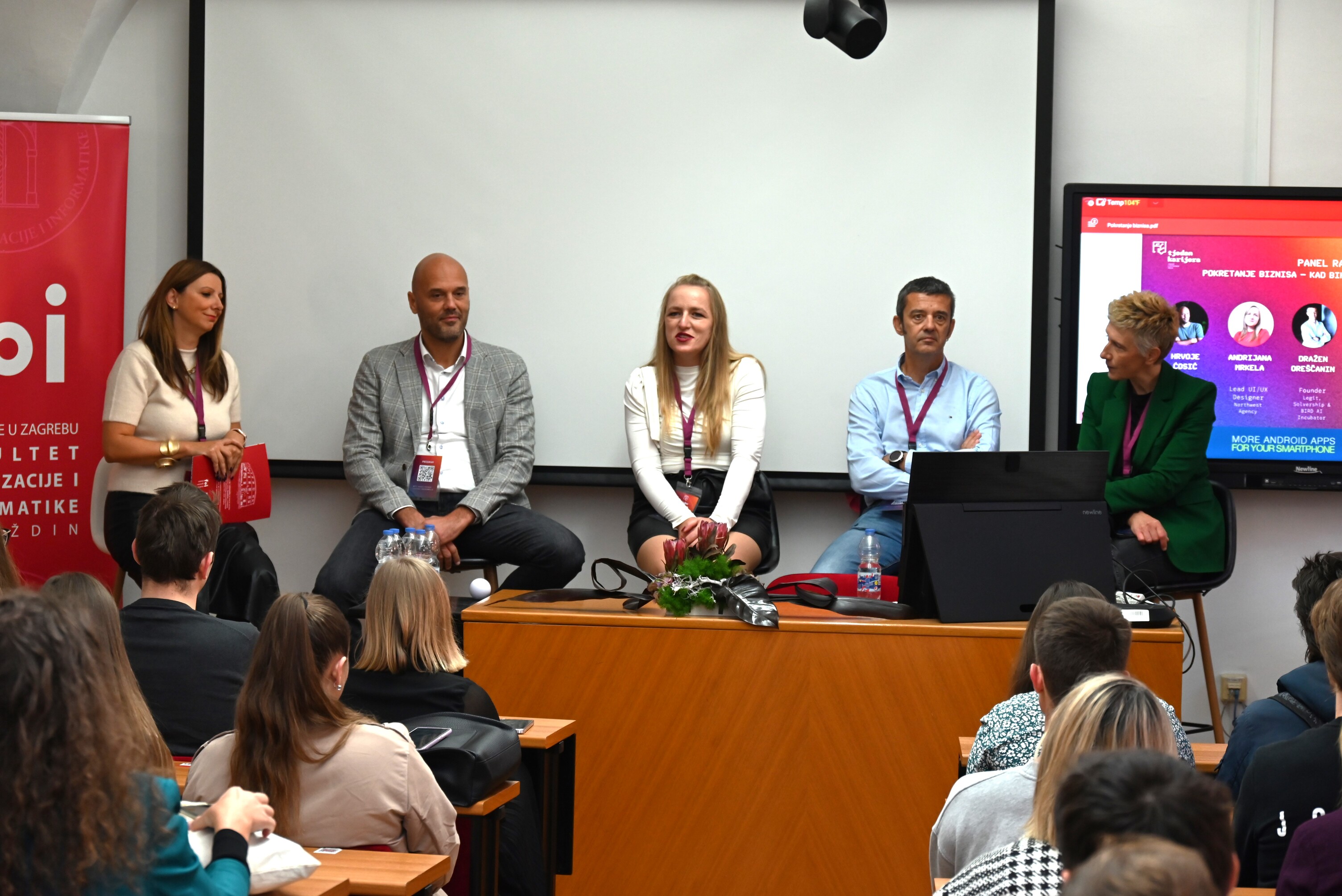 Tjedan karijera obilježila je dinamična panel rasprava o upravljanju očekivanjima u karijeri, koju su vodili renomirani govornici iz svijeta biznisa: Jelena Jelušić (INSPO Consulting), Vatroslav Mileusnić (Tabu.hr), Goran Kovačević (Infinum), Marko Možina (Emil Frey Digital) i Saša Erak (Infobip). Diskusiju je moderirao Ivan Brezak Brkan, osnivač Netokracije. Panel je pružio studentima realan uvid u izazove IT tržišta rada, razotkrivajući mitove o zapošljavanju i visini plaće u IT-u, naglašavajući važnost umrežavanja i profesionalnog razvoja. Ove godine poseban naglasak stavljen je i na poduzetništvo i mogućnosti pokretanja vlastitog posla. U razgovorima s uspješnim poduzetnicima, među kojima su Hrvoje Ćosić (Aircash), Dražen Oreščanin (BIRD Incubator), Andrijana Mrkela (Northwest Agency), Marijana Šarolić Robić (CRO Startup), studenti su dobili uvid u jedinstvene prilike i izazove s kojima se suočavaju poduzetnici u Hrvatskoj. Uz to, FOI-jev projekt Regionalnog centra za predinkubaciju u pametnoj industriji voditeljice prof. Nine Begičević Ređep, kao prvi takav u Hrvatskoj dodatno je istaknut kao ključna podrška mladim inovatorima.