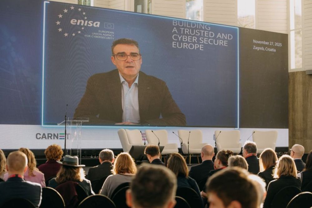 Evangelos Ouzounis, voditelj izgradnje kapaciteta u ENISA-i, u pozdravnom govoru istaknuo je: „Podizanje svijesti o kibernetičkoj sigurnosti temelj je jačanja naše otpornosti i učinkovitog odgovora na sve složeniji krajobraz prijetnji. Ponosni smo na suradnju s CARNET-om i hrvatskim Nacionalnim koordinacijskim središtem – NKS-om u organizaciji ove važne konferencije posvećene podizanju svijesti, raspravi o utjecaju umjetne inteligencije te predstavljanju ENISA-inog alata AR-in-a-Box za gamifikaciju.“
