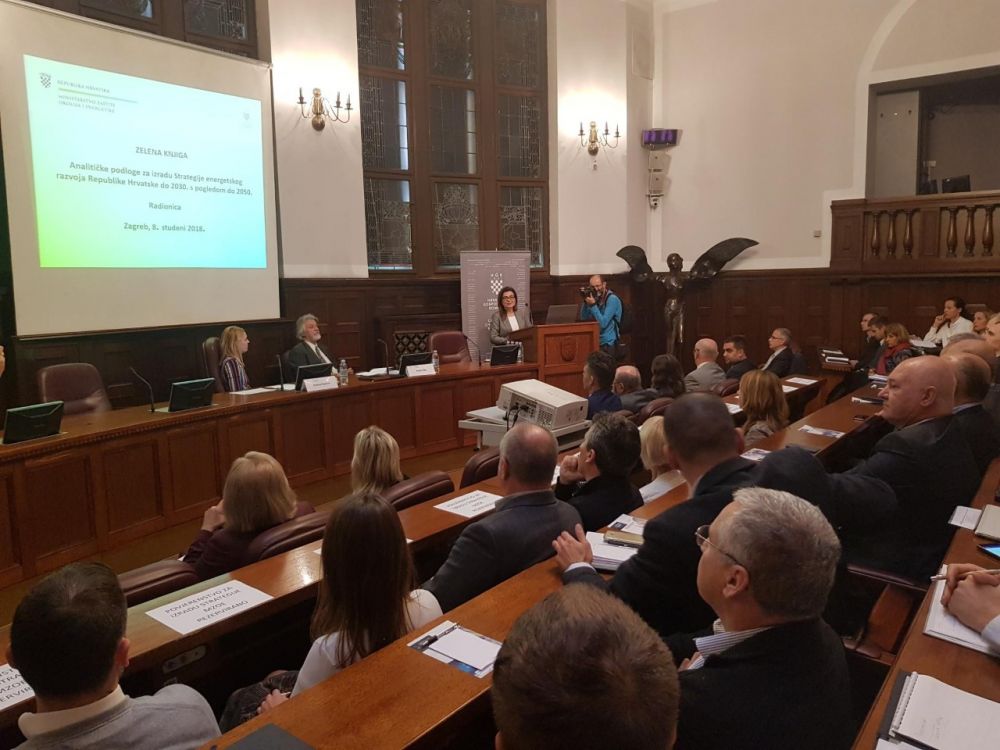 Mario Tot iz Energetskoga instituta Hrvoje Požar predstavio je sadržaj Zelene knjige predstavnicima struke i institucija. Kao glavne odrednice razvoja budućih energetskih sustava istaknute su sigurnost opskrbe kroz domaću proizvodnju i alternativne dobavne pravce, zatim energetska učinkovitost kao važan fokus, elektrifikacija i čista proizvodnja, sa smanjenom emisijom stakleničkih plinova i onečišćujućih tvari. Također je potrebno voditi računa o razvoju kružnoga gospodarstva i onih gospodarskih grana koje izravno pridonose realizaciji ciljeva nisko-ugljičnoga razvoja. Zelena knjiga definira dva scenarija razvoja. Prema scenariju ubrzane energetske tranzicije, predviđa se smanjenje emisije stakleničkih plinova za 40% do 2030., tj. za 75% do 2050. u odnosu na razinu iz 1990. godine. Prema scenariju umjerene energetske tranzicije, predviđa se smanjenje emisije stakleničkih plinova za oko 35% do 2030. godine i za 65% do 2050. godine. U slučaju zgradarstva prema scenariju ubrzane energetske tranzicije, predviđa se energetska obnova fonda zgrada po prosječnoj godišnjoj stopi od 3%, čime bi do 2050. cjelokupni fond zgrada postao nisko-energetski, dok je prema umjerenom scenariju predviđena godišnja stopa od 1,6%. Prema ubrzanom scenariju, udio obnovljivih izvora energije u ukupnoj potrošnji energije do 2030. iznosio bi 32% i oko 56% do 2050. godine. Prema scenariju umjerene energetske tranzicije, udio obnovljivih izvora energije iznosi 32% do 2030. i oko 46% do 2050. godine.