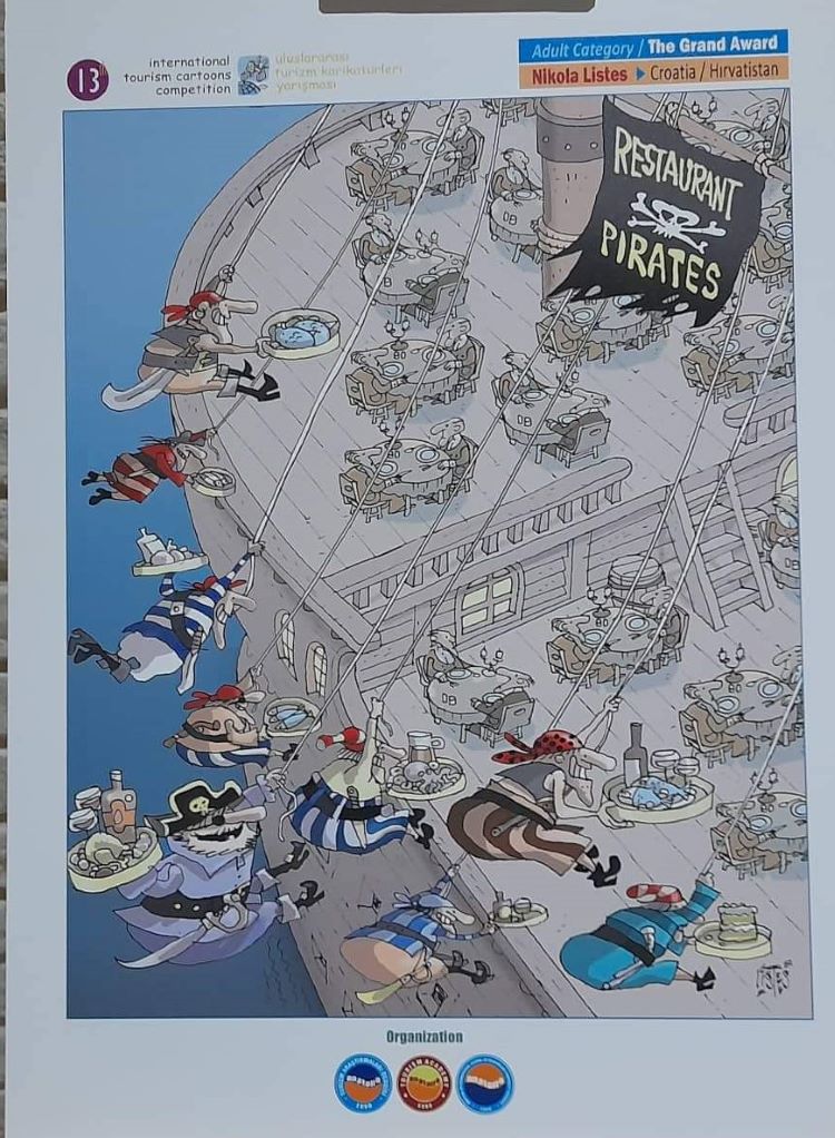 Dodjela je ove godine bila u centru turskoga turizma i vrijedi naglasiti koju je temu hrvatski karikaturist nacrtao. Nikola Listeš ističe da je nacrtao pirate kako skaču s broda na brod s tacnama i čini se da se to svidjelo žiriju. Uvijek je tu faktor "sriće" presudan, drži splitski autor, a važno je i tko je u žiriju, ali je kasnije čuo - rad se odmah svidio žiriju i to je to. Listeš ističe: „ Puno je tu radova i važno je tko preferira kakav ukus i stil. Naravno, ja se trudim da na te festivale idem što jednostavnije i da moj humor bude što 'čistiji'. Ne volim previše gravirati s crtežom i mada je to nekad dobitna kombinacija.“