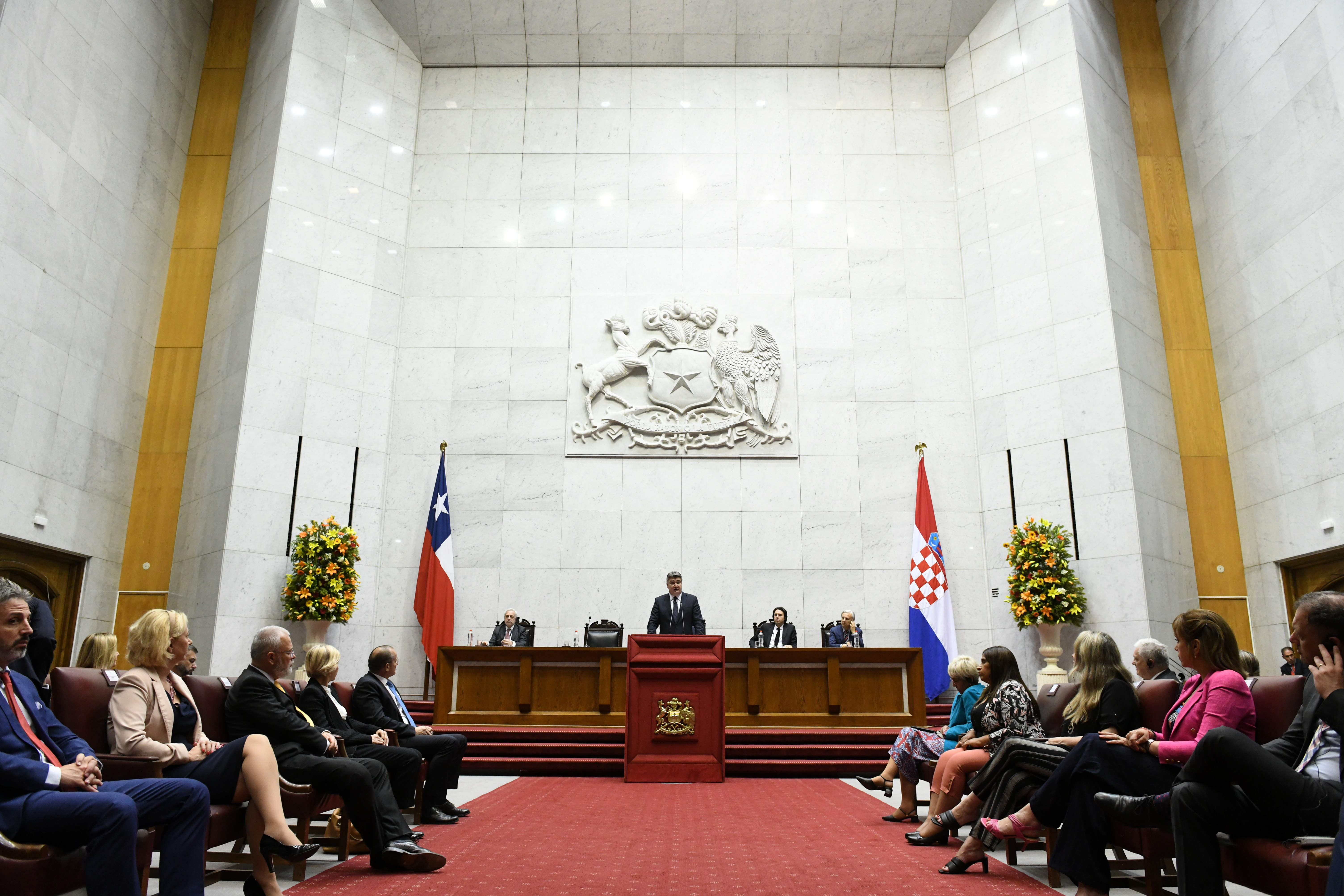 U svom obraćanju zastupnicima predsjednik je još jednom podsjetio i na ulogu hrvatskih iseljenika u povijesti Čilea.