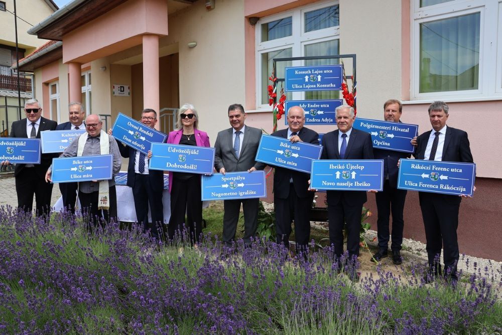 U pograničnom području Mađarske, već je ranije postavljen niz dvojezičnim ploča s nazivima ulica i javnih ustanova, a s velikom radošću svoj red dočekali su Hrvati iz Pustare. Dvojezične ploče postale su pečat dugog prijateljstva dviju zemalja i svjedoci njegovanja identiteta ovdašnjih ljudi, istaknuo je župan Međimurske županije Matija Posavec. „Raduje me što nastavljamo otkrivati nove dvojezične ploče, simbole našega prijateljstva i potpore našim sunarodnjacima u čuvanju materinjega jezika, jer jezik je najznačajnije obilježje jednog naroda, kojeg trebamo čuvati- pogotovo u mjestima gdje žive naši ljudi i naše manjine“, rekao je župan Posavec te izrazio zadovoljstvo što Međimurska županija na jedan simboličan način povezuje, brine, čuva i štiti identitet našim pomurskih Hrvata, „Ploče su simbol, no zapravo predstavljaju dodanu vrijednost za ono što je svima nama najvažnije – a to je izgradnja mosta koji će biti od iznimnog značaja za obje zemlje.“