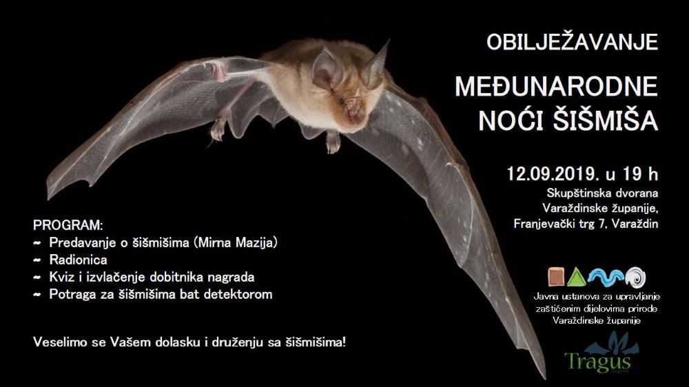 Javna ustanova za upravljanje zaštićenim dijelovima prirode Varaždinske županije u suradnji s Udrugom za zaštitu šišmiša Tragus organizira večeras, u 19 sati, u županijskoj dvorani obilježavanje 23. Međunarodne noći šišmiša.