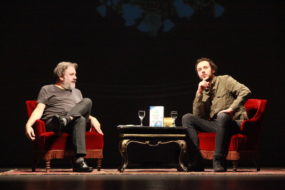 Slavoj Žižek je nekoliko puta gostovao u zagrebačkome HNK, a zahvaljujući Filozofskom teatru uprizorena je i predstava Antigona po njegovu dramskom tekstu u režiji Angele Richter. Za nastupe toga svjetski poznatog filozofa obično bi se u nekoliko dana razgrabile ulaznice, a u kazalištu bi publika koju je činilo 1.000 ljudi sjedila i na pozornici. Organizatori ne očekuju ništa manje ni ovaj put.