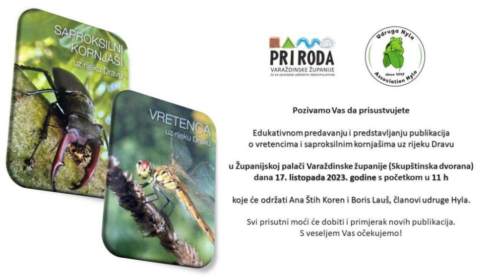 Javna ustanova Priroda Varaždinske županije u suradnji s udrugom Hyla organizira edukativno predavanje i promociju brošura u utorak,17. listopada u 11 sati, skupštinska dvorana.