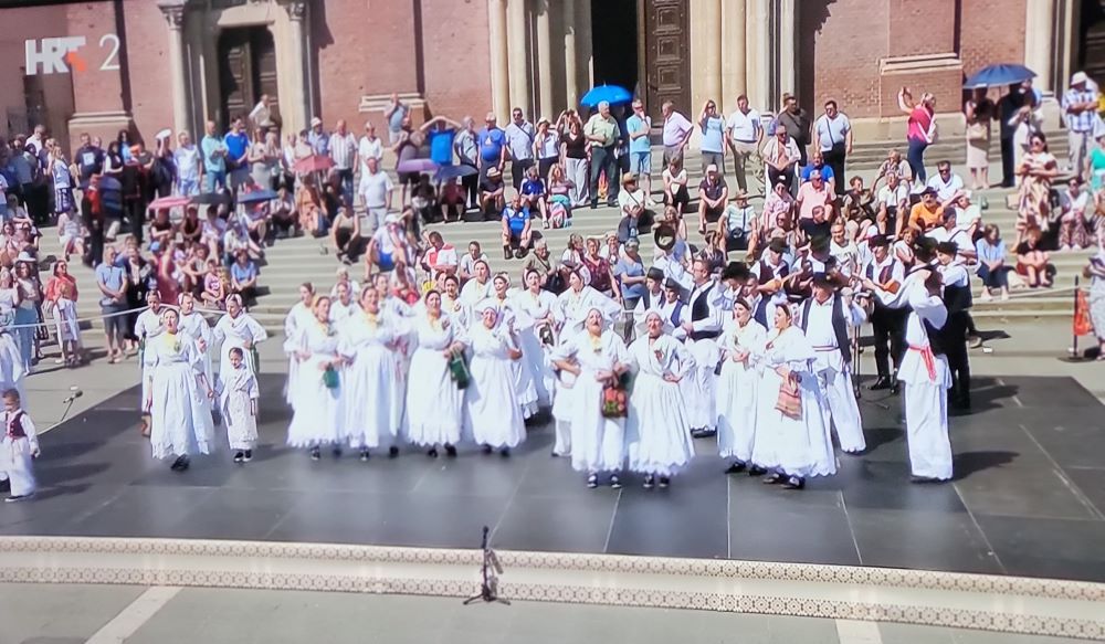 Potom je, oko 10.30, u katedrali sveta misa, a istovremeno u Strossmayerovu parku počinje Međunarodna smotra folklora. U 11 sati tu je Smotra folklora Hrvatske, dok je u 15 sati na hipdoromu Nagrada Državne ergele Đakovo i Lipik - vožnja jednoprega i dvoprega. U 17 sati ponovno je sve u znaku folklora u Strossmayerovu parku, na čijoj ljetnoj pozornici tada počinje Smotra folklora Slavonije, Baranje i zapadnog Srijema.