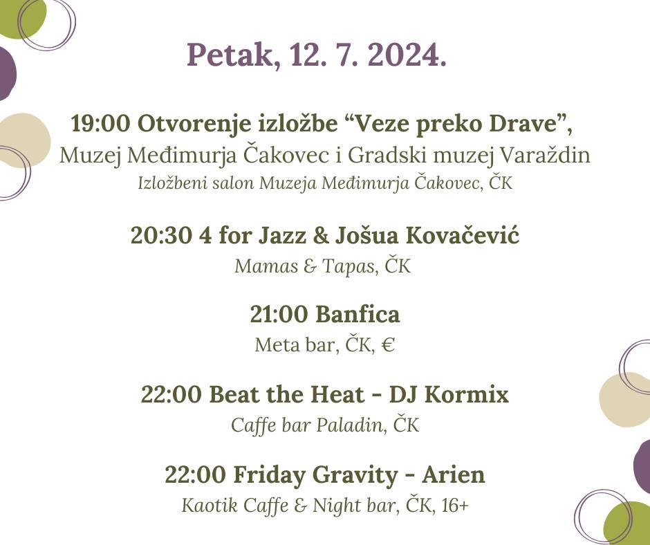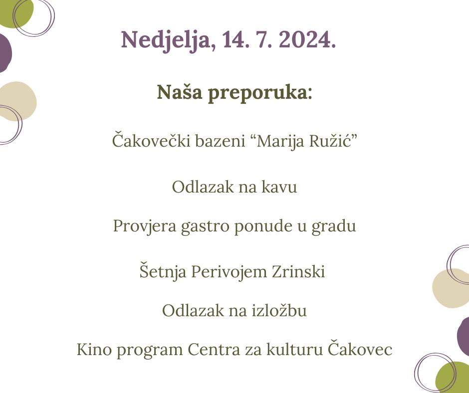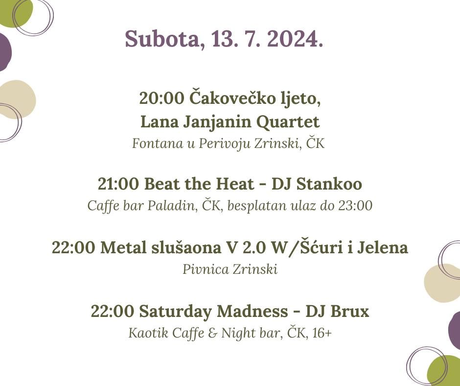 Turistička zajednica Grada Čakovca poziva na još jedan uzbudljiv vikend u okviru Ljeta u Čakovcu. Pogledajte raspored, odaberite program koji vas zanima i uživajte u ljetnim događanjima na otvorenom. Rashladite se uz glazbu, uživajte u eno gastro ponudi i osjećajte se izvrsno.