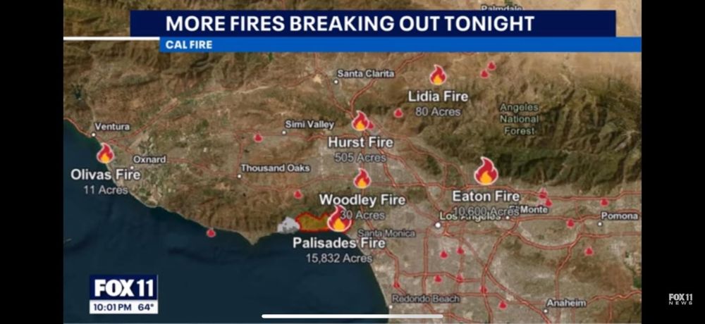 A HRT javlja da iako se činilo da se vjetar smiruje, sada je opet ojačao i požar se širi prema istoku. Vatrogasci pokušavaju obraniti Brentwood, jednu od najekskluzivnijih gradskih četvrti. Istodobno, rastu brojevi od kojih svi strahuju. U požarima je dosad smrtno stradalo najmanje 16 ljudi. Izgorjelo je 12 tisuća kuća i objekata. Više požara koji već šest dana bjesne Los Angelesom ostavili su najmanje 16 mrtvih, a u subotu su se proširili na područja koja su prethodno bila pošteđena. Jedanaest smrtnih slučajeva posljedica je požara Eaton u blizini Pasadene, a pet ostalih na području okruga Pacific Palisades. Na širem području Los Angelesa od utorka bukti nekoliko većih požara, no ova dva su najteža.