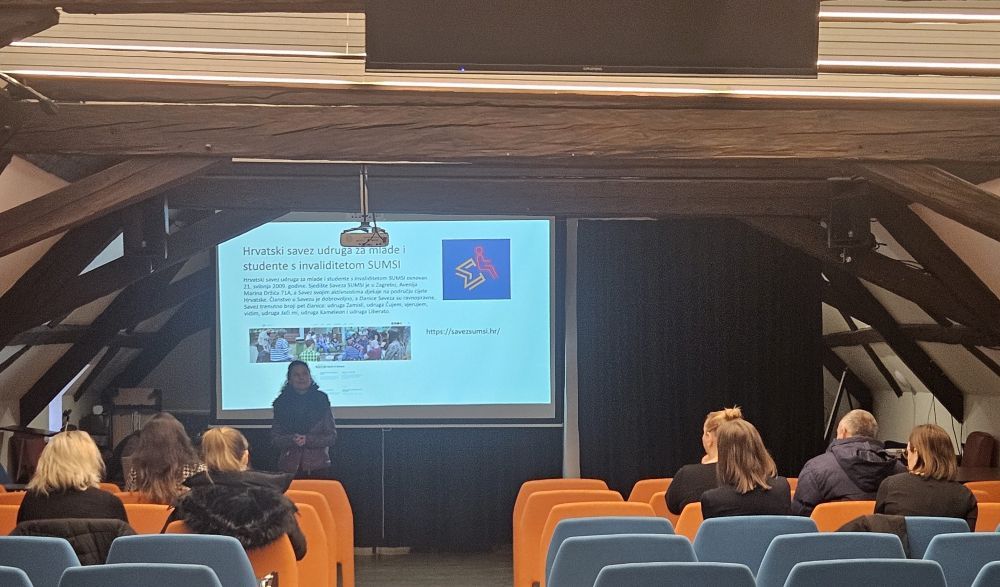 Besplatno predavanje je organizirao Hrvatski savez udruga za mlade i studente s invaliditetom (SUMSI) u sklopu projekta „Odmori OSI 2“, a predavači su prenijeli svoja iskustva i izazove s kojima se susreću pri putovanjima te dali konkretne prijedloge i rješenja kako unaprijediti pristupačnost turističkih sadržaja i usluga. Sudionici su kroz izlaganje upoznati s osnovama univerzalnog dizajna koji omogućuje korištenje prostora što većem broju ljudi, bez potrebe za dodatnim prilagodbama. Takav pristup dizajnu ne koristi samo osobama s invaliditetom, već i roditeljima s djecom u kolicima, osobama starije životne dobi te svima s privremenim ili trajnim poteškoćama u kretanju. Predavači su istaknuli da nedostatak adekvatnog smještaja i sadržaja često onemogućuje osobama s invaliditetom da ravnopravno istražuju i dožive nove destinacije, što ih stavlja u nepovoljan položaj u odnosu na ostale turiste. S druge strane, iskustva pokazuju da su osobe s invaliditetom gosti koji ostaju dulje, troše više i, ako su zadovoljni kvalitetom usluge, rado se vraćaju u destinaciju.