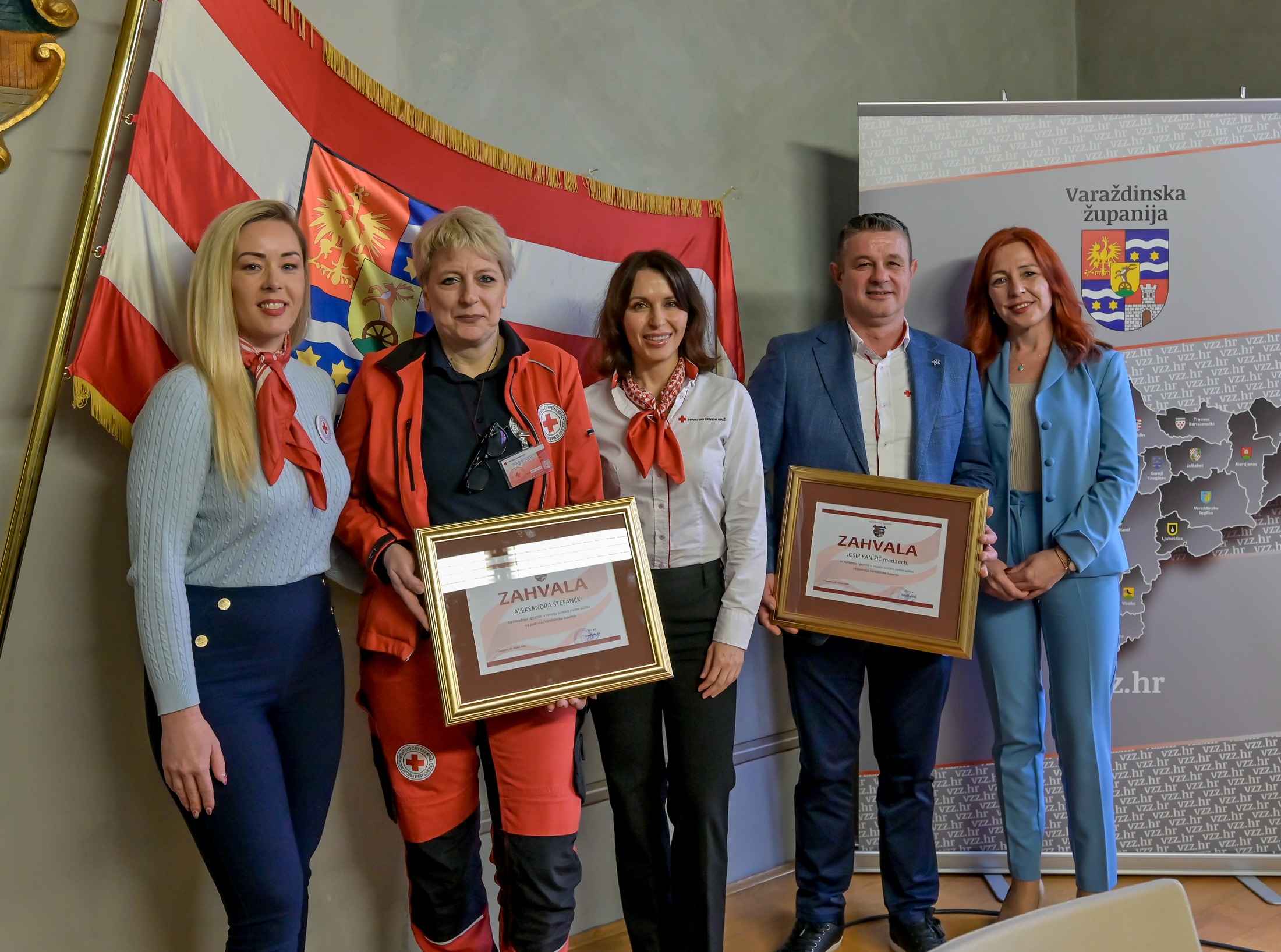 Aleksandra Štefanek, članica Društva Crvenog križa Varaždinske županije i Interventnog tima, zahvalnicu je primila za dugogodišnje aktivno djelovanje u kriznim situacijama, posebno tijekom pandemije i zbrinjavanja raseljenih osoba iz Ukrajine, te za doprinos edukacijama, logistici i psihosocijalnoj podršci.