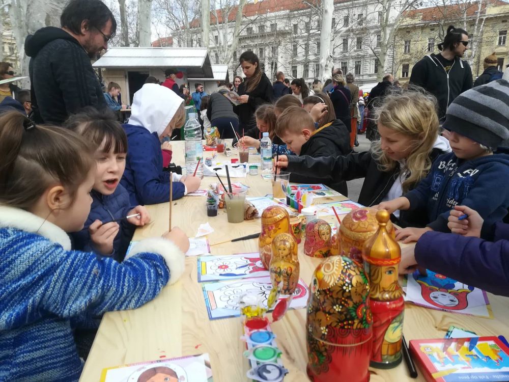 U Zagrebu je to bila osma Maslenica te je i ove godine okupila mnogobrojne sunarodnjake, ali i druge znatiželjnike, koji su se rado priključili veselju pa čak s izvođačima i zaplesali. Bio je to naravno i dječji praznik pa su djeca recitirala, plesala, igrala igre, a ona najmlađa sudjelovala i u likovnim radionicama i crtala ili slikala babuške pod vodstvom likovne umjetnice i karikaturistice Sanje Pribić i slikarice iz Rusije Larise Kralj.