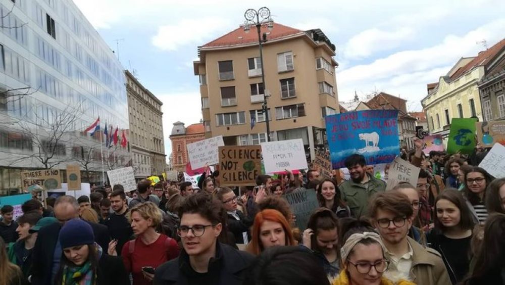 "Trebamo promjenu, trebamo je sad", "Spasimo planet", uzvikivali su učenici zagrebačkih srednjih škola u prosvjedu protiv klimatskih promjena na Markovu trgu. Oko tisuću učenika iz više zagrebačkih srednjih škola okupilo se u 12.30 na Europskom trgu. S transparentima na hrvatskom i engleskom jeziku, pridružili su globalnom pokretu "Petkom za budućnost" u sklopu kojega se u petak u više od 2000 gradova svijeta održava prosvjed učenika.