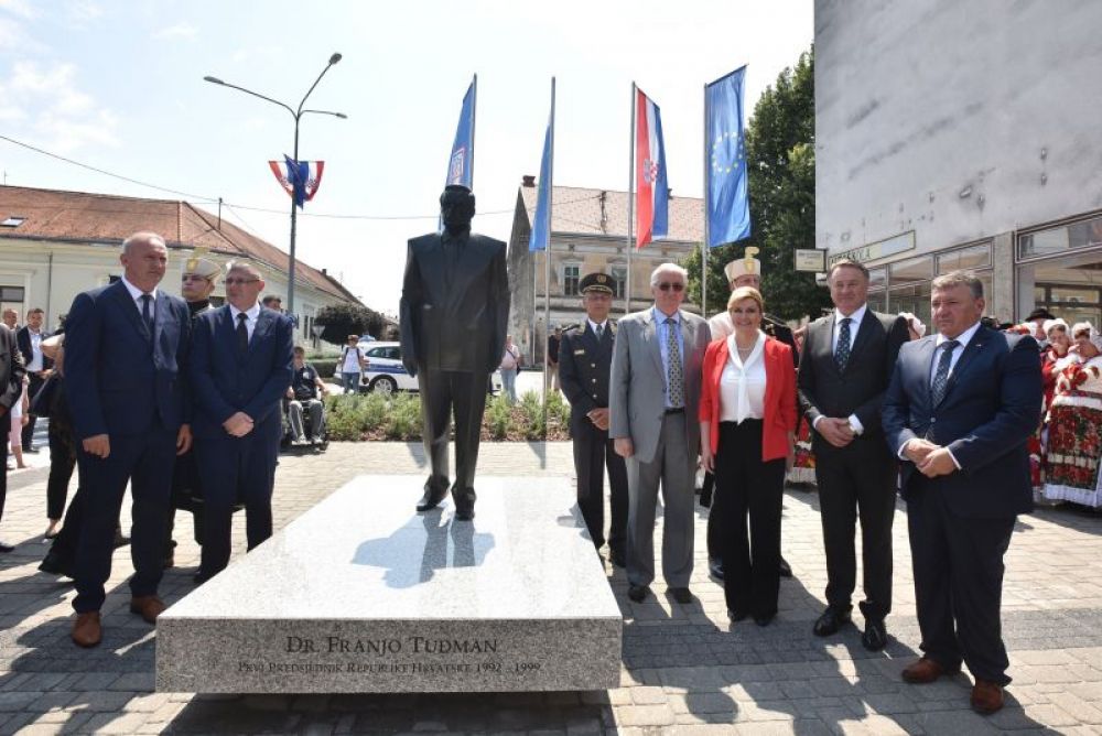 Prilikom otkrivanja spomenika prvome hrvatskom predsjedniku dr. Franji Tuđmanu, predsjednica Grabar-Kitarović kazala je kako su višestoljetnu borbu hrvatskoga naroda za slobodu i državnu neovisnost obilježili mnogi velikani, no kako je malo onih po kojima se može nazvati cijela epoha.
