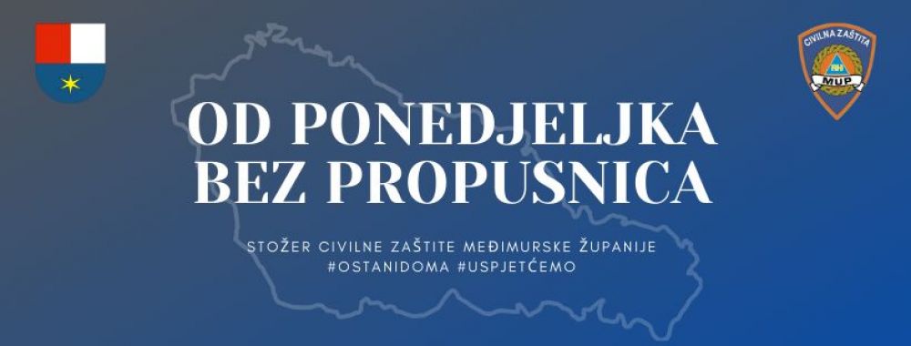 Kao što je tijekom današnje konferencije za novinare i najavljeno, od ponoći se za područje Međimurske županije ukidaju e-propusnice. To znači da se građani Međimurja mogu slobodno kretati na području cijele županije bez propusnica. E-propusnice će i dalje trebati za odlazak u druge županije na području Republike Hrvatske.