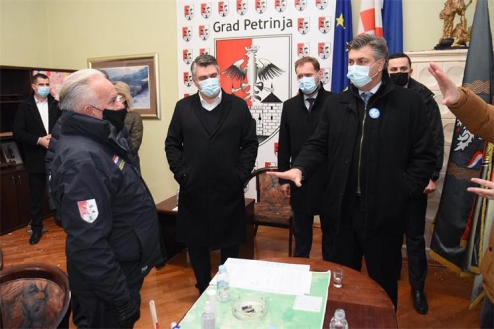 Predsjednik Vlade Andrej Plenković, uz predsjednika RH Zorana Milanovića i predsjednika Hrvatskog sabora Gordana Jandrokovića te ministre Medveda, Božinovića, Banožića, Horvata i Beroša, u ponedjeljak prijepodne posjetio je Sisak i Petrinju, nakon snažnog potresa koji je jutros pogodio Sisačko-moslavačku županiju. Plenković je izrazio zadovoljstvo što u gradu nitko nije stradao u potresu te najavio kako će nastale štete nastojati čim prije sanirati."Došli smo podržati sugrađane u Sisačko-moslavačkoj županiji, u Sisku, Petrinji, ostalim gradovima i općinama koje je pogodio jutrošnji potres“, rekao je Plenković u Sisku te dodao: "Kakva je godina bila, tako je na neki način i završila“.Naglasio je da će građanima biti na raspolaganju sve službe.