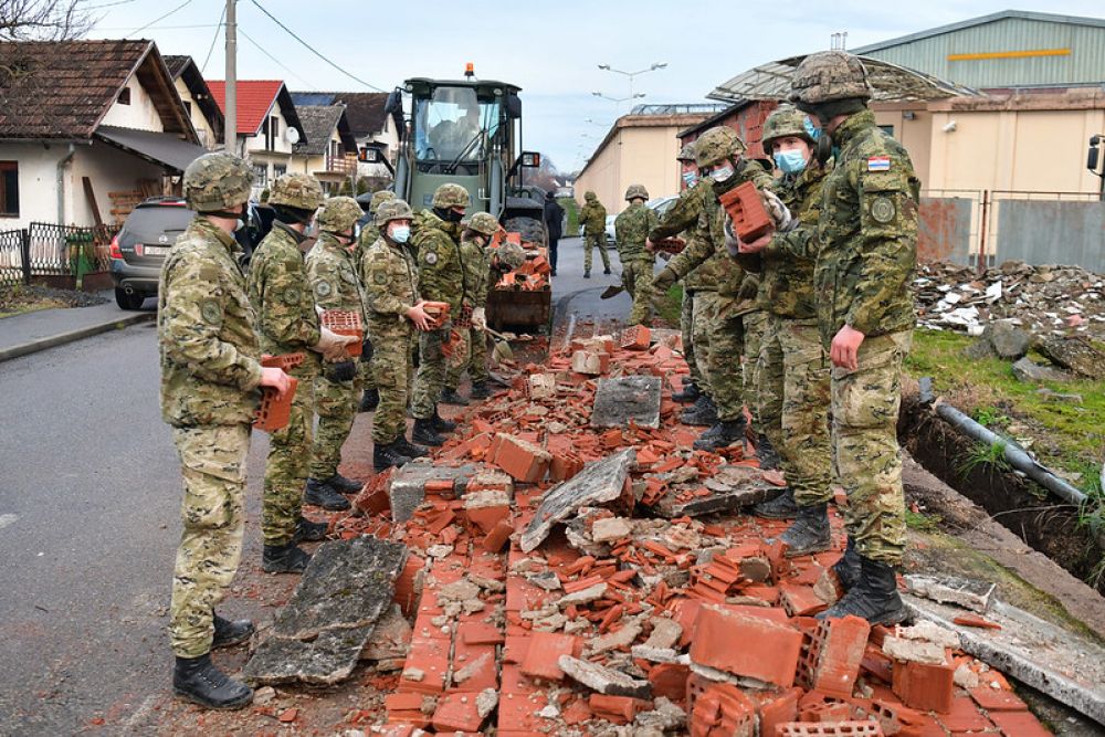 Na širem području Petrinje danas je bilo angažirano 105 pripadnika Hrvatske vojske s inżenjerijskom mehanizacijom, a poslije podne se taj broj povećao na 200 pripadnika koji su bili angažirani u naseljima Strašnik, Cepeliš, Pecki i Donja Bačuga.Također, na terenu su angažirane i snage Zapovjedništva za potporu koje su iz vojarne „1. gardijske brigade 'Tigrovi' – Croatia“ Zagreba vojnim konvojem upućene u vojarnu u Petrinji s ciljem pružanja logističke i zdravstvene potpore snagama Hrvatske kopnene vojske i pružanju pomoći unesrećenom civilnom stanovništvu. Postepenim narastanjem snaga, a sukladno procjenama i novim zahtjevima, dosad je angažirano ukupno 173 pripadnika Zapovjedništva za potporu.