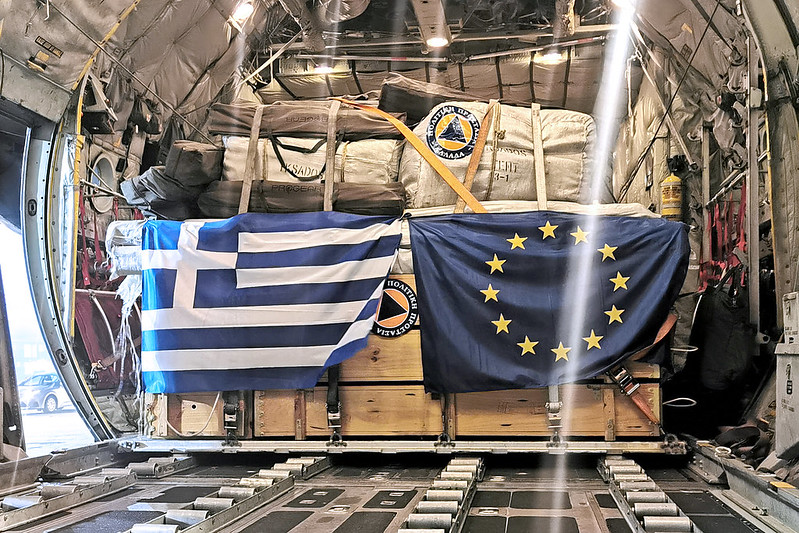 Pomoć iz Grčke stigla je u okviru odgovora zemalja članica Europske unije, nakon što je Republika Hrvatska 29. prosinca aktivirala Mehanizam unije za civilnu zaštitu – program Unije namijenjen pružanju žurne pomoći, kojim je zatražena konkretna pomoć u obliku opreme i sredstava koji su procijenjeni kao najpotrebniji kako bi se pomoglo stanovništvu potresom pogođenih područja Sisačko-moslavačke županije. Iskazane su potrebe za zimskim šatorima, svjetiljkama sa zaštitom od PVC mreže, rasvjetnim balonima / tornjevima za osvjetljenje, električnim grijačima, sklopivim krevetima, vrećama za spavanje i kontejnerima za stanovanje.