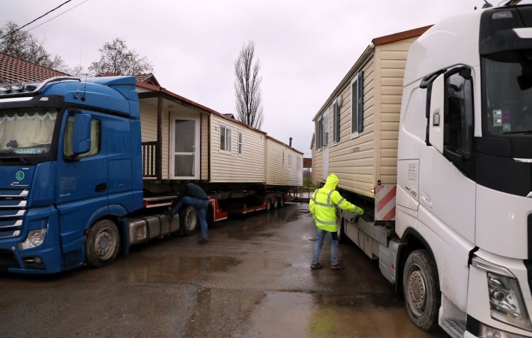 U Glinu je u četvrtak ujutro oko 7 sati stiglo prvih 20 mobilnih kućica dovezenih na šleperima, većinom iz Istre, koje je doniralo više domaćih hotelskih kuća i drugih tvrtki, a u idućih par dana ih se očekuje ukupno više od 84, u koje se može smjestiti više od 500 ljudi. Izvijestili su to na dočeku kućica ministrica turizma i sporta Nikolina Brnjac, potpredsjednik Vlade i ministar hrvatskih branitelja Tomo Medved i župan Sisačko-moslavački Ivan Žinić.