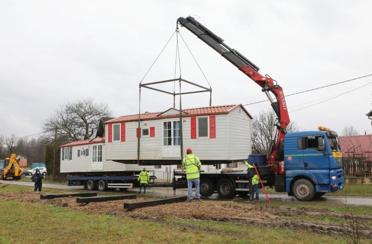 Kućice su dovezli šleperi više prijevozničkih tvrtki iz cijele Hrvatske, a svaka ima dvije sobe (za četiri do šest osoba), opremljene kuhinje s namještajem te toalet i tuš, a postavljaju se na kamene blokove.