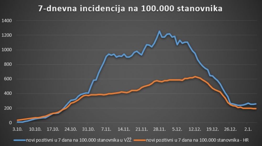 Tijekom 24 sata u Varaždinskoj županiji evidentirana su 144 nova slučaja zaraze koronavirusom, a broj novozaraženih unutar 7 dana na 100.000 stanovnika ovime je na 256.Sedmodnevni broj novozaraženih u Varaždinskoj županiji je posljednjih desetak dana stabilan, oko brojke 420, a u posljednjih tjedan dana brojimo 426 novih slučajeva.