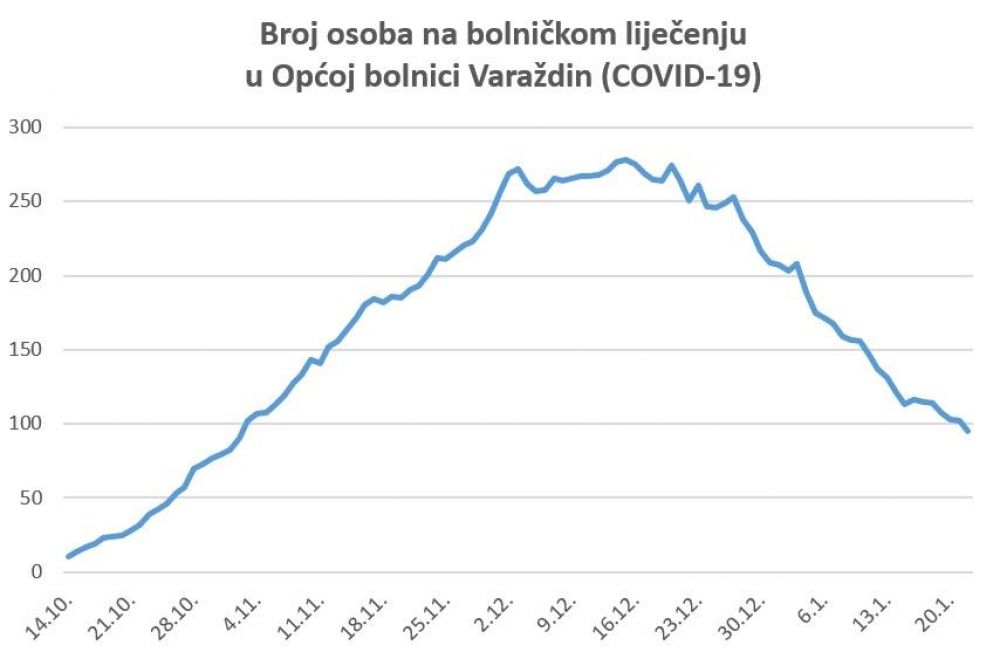 Tijekom 24 sata u Varaždinskoj županiji evidentirano je 15 novih slučajeva zaraze koronavirusom, a u posljednjih tjedan dana ukupno 196 novih slučajeva. Broj novozaraženih unutar 7 dana na 100.000 stanovnika je 118, a broj novozaraženih na 100.000 stanovnika zadnjih 14 dana je 274. Tijekom jučerašnjeg dana testirano je 298 uzoraka, od kojih je 122 zaprimljeno preko COVID-ambulante od simptomatskih pacijenata. Udio pozitivnih među simptomatskim pacijentima je 10 posto, a u svim testiranim uzorcima je 5 posto. Na bolničkom liječenju u Općoj bolnici Varaždin su 92 osobe s težom kliničkom slikom. Od toga je 28 osoba na odjelu infektologije i drugim odjelima u Varaždinu, 6 u jedinici intenzivnog liječenja na respiratoru, 39 je u Klenovniku od kojih 2 na respiratoru i 19 u Novom Marofu.