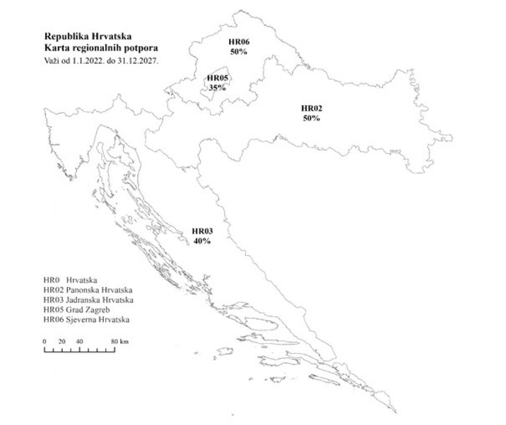 Dana 19. travnja 2021. objavljene su nove Smjernice za regionalne državne potpore te je slijedom toga izrađen Prijedlog karte regionalnih potpora za razdoblje od 2022.-2027. godine koji se upućuje na odobravanje Europskoj komisiji.