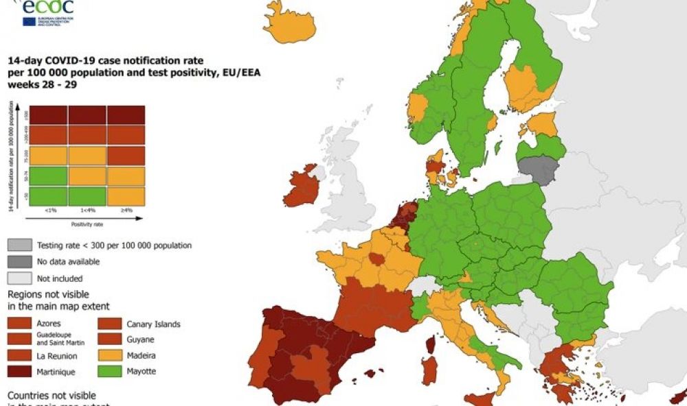 Hrvatska obala na novoj koronakarti Europe i dalje je označena narančastom bojom, dok je ostatak Hrvatske u zelenom.