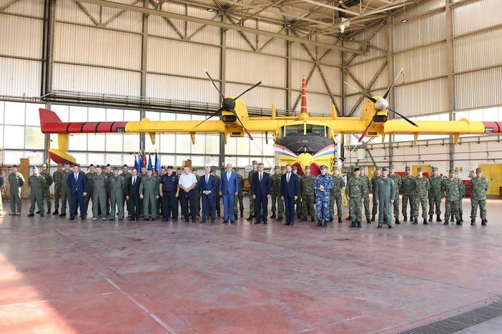Ministar obrane Mario Banožić i načelnik Glavnog stožera Oružanih snaga RH admiral Robert Hranj boravili su u četvrtak, 19. kolovoza u pratnji predsjednika Vlade RH Andreja Plenkovića i potpredsjednika Vlade i ministra unutarnjih poslova Davora Božinovića, u radnom posjetu 855. protupožarnoj eskadrili 93. krila Hrvatskog ratnog zrakoplovstva u Zemuniku.