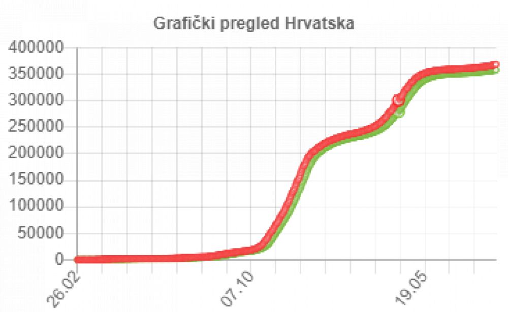 U pet dana ovoga tjedna Hrvatska bilježi 42% više novih slučajeva zaraze koronavirusom nego u pet dana prošloga tjedna. Danas je 468 novih slučajeva zaraze virusom SARS-CoV-2 te je broj aktivnih slučajeva u Hrvatskoj ukupno 2.509. Među njima je 251 pacijent na bolničkom liječenju, od toga je na respiratoru 26 pacijenata. Preminula je jedna osoba. - Piše HRT.