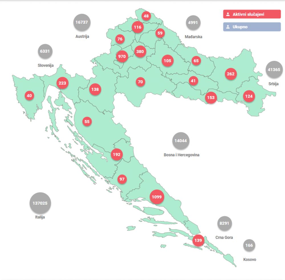Broj oboljelih od COVID-19 i stope po županijama možete pronaći na poveznici.