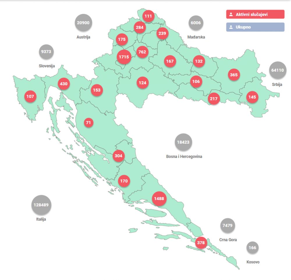 Broj oboljelih od COVID-19 i stope po županijama možete pronaći na poveznici.