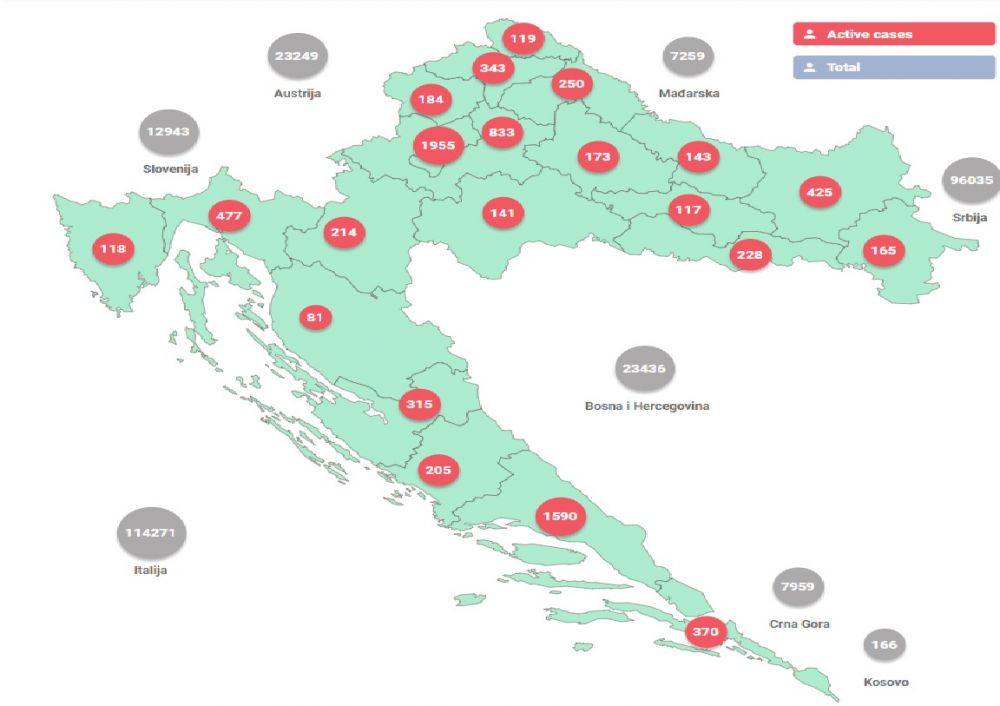 Broj oboljelih od COVID-19 i stope po županijama možete pronaći na poveznici.