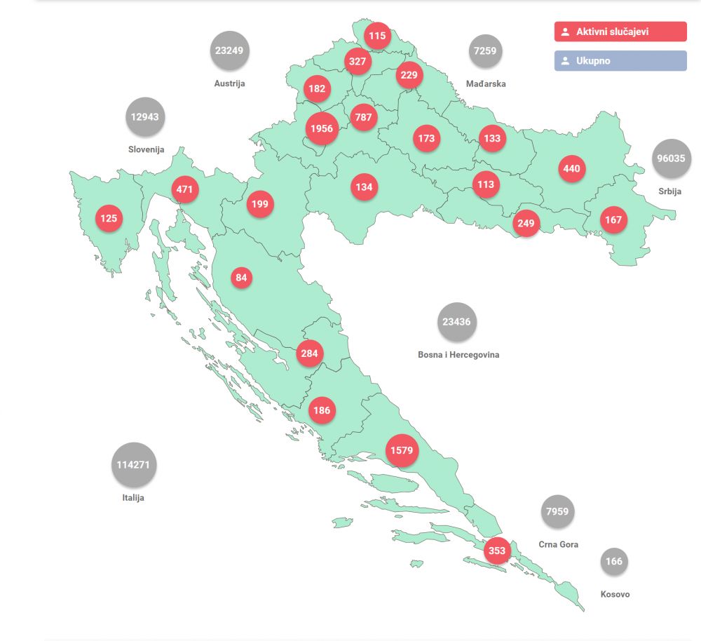 Broj oboljelih od COVID-19 i stope po županijama možete pronaći na poveznici.