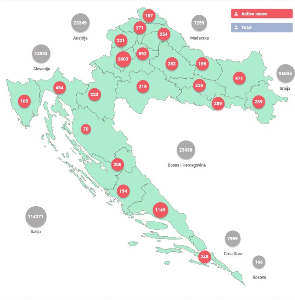 Broj oboljelih od COVID-19 i stope po županijama možete pronaći na poveznici.
