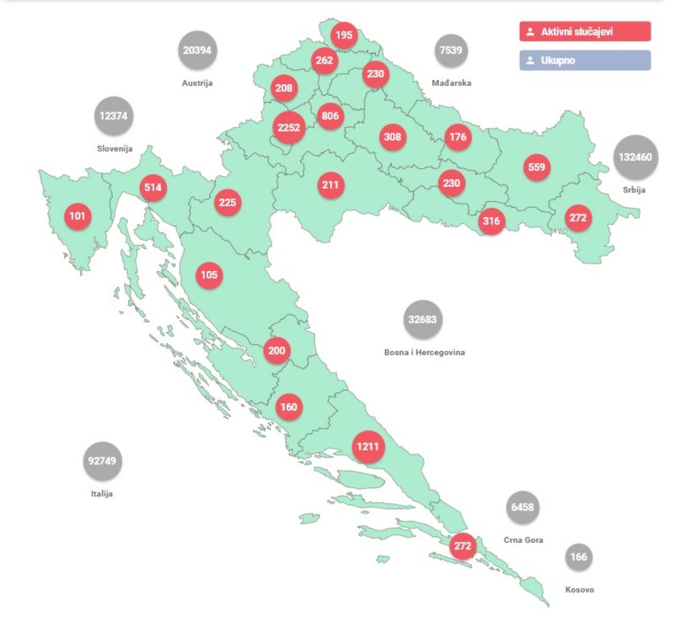 Broj oboljelih od COVID-19 i stope po županijama možete pronaći na poveznici.