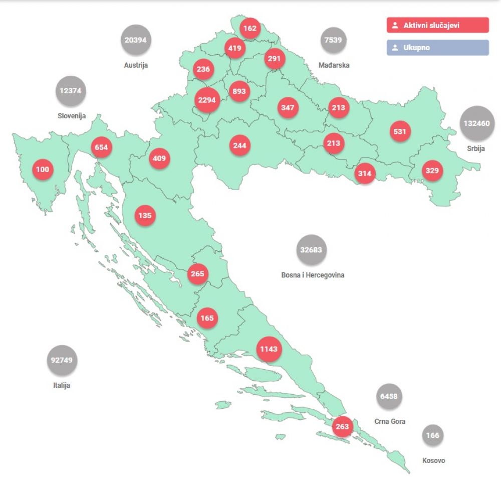 Broj oboljelih od COVID-19 i stope po županijama možete pronaći na poveznici.