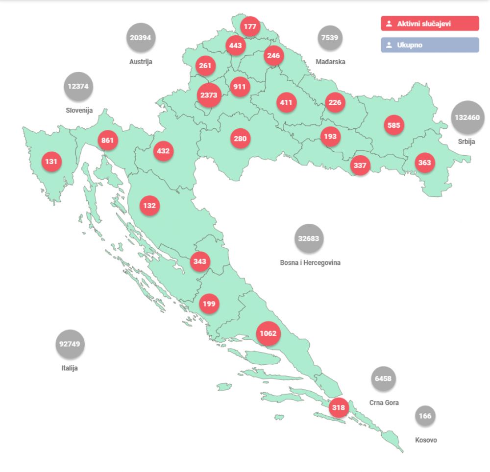 Broj oboljelih od COVID-19 i stope po županijama možete pronaći na poveznici.