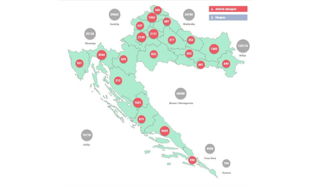 Broj oboljelih od COVID-19 i stope po županijama možete pronaći na poveznici.