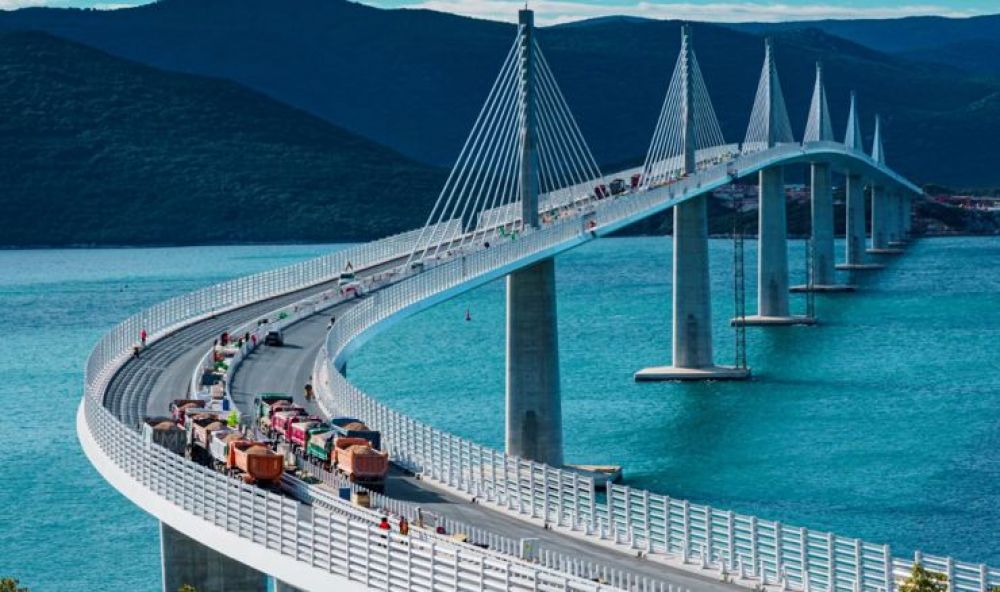 Testiranje Pelješkog mosta probnim opterećenjem i dalje traje. Počelo je prije nekoliko dana kako bi se utvrdilo ponaša li se konstrukcija mosta pod opterećenjem u skladu s projektiranim vrijednostima. Most se testira opterećenjem s 20 kamiona od kojih je svaki težak 40 tona.