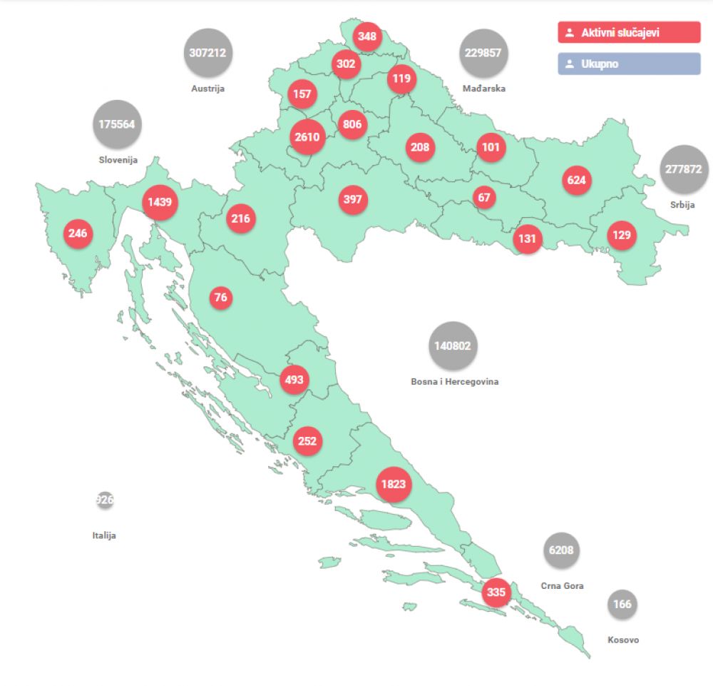 Broj oboljelih od COVID-19 i stope po županijama možete pronaći na poveznici.