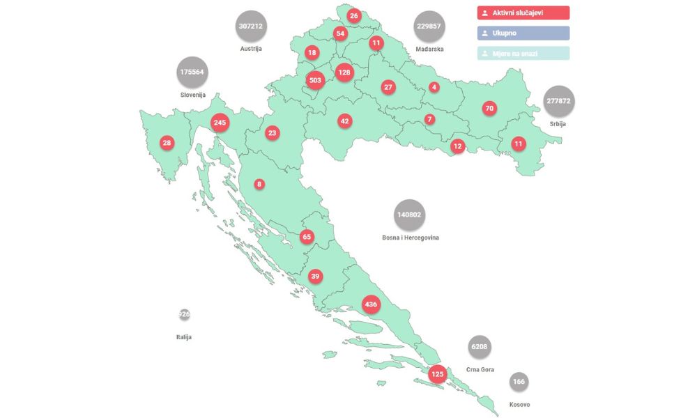 Broj oboljelih od COVID-19 i stope po županijama možete pronaći na poveznici.