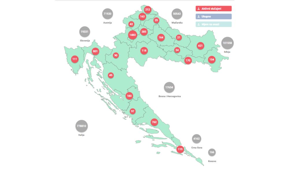 U posljednja 24 sata zabilježeno je 46 novih slučajeva zaraze virusom SARS-CoV-2 te je broj aktivnih slučajeva u Hrvatskoj danas ukupno 5.537.