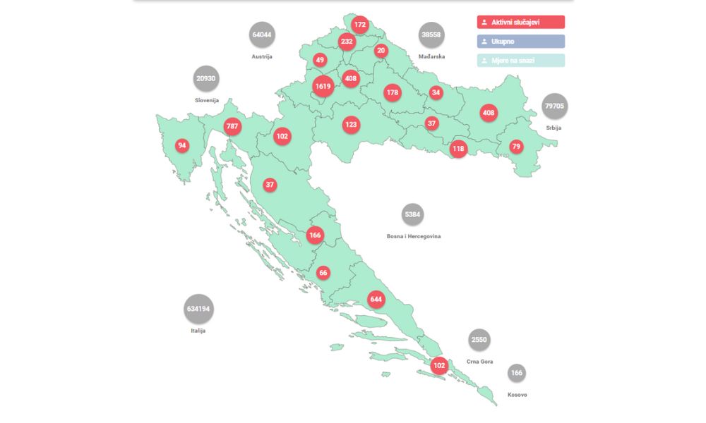 Među njima je 566 pacijenata na bolničkom liječenju, od toga je na respiratoru 16 pacijenata.