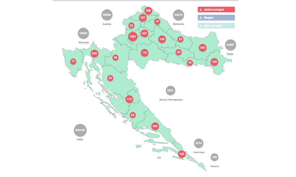 Među njima je 508 pacijenata na bolničkom liječenju, od toga je na respiratoru 11 pacijenata.