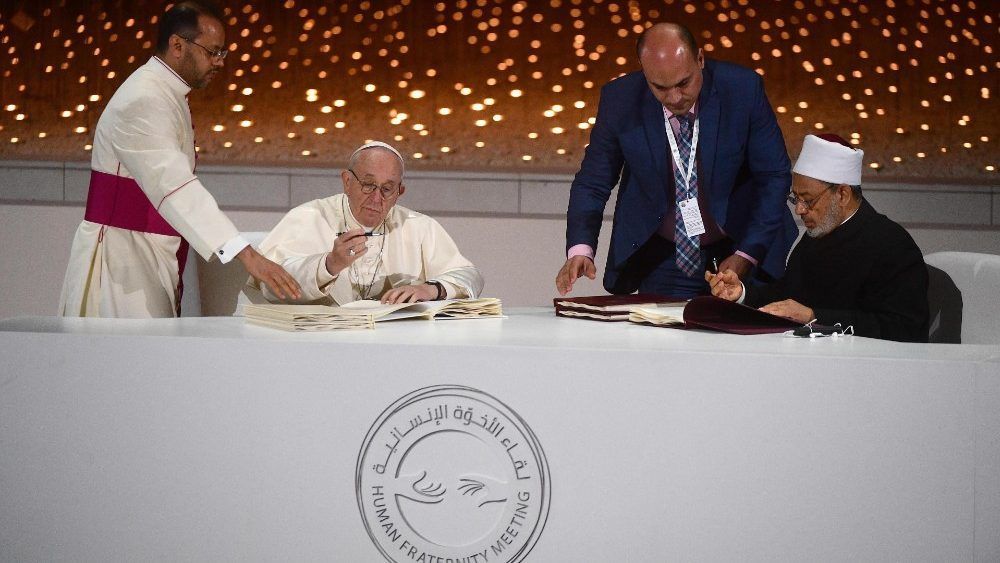 Prije godinu dana, točnije 4. veljače 2019., papa Franjo i veliki imam džamije i sveučilišta Al-Azhara potpisali su Deklaraciju iz Abu Dhabija; snažan poziv na ponovno otkrivanje uzajamnoga bratstva u svrhu zajedničkoga promicanja pravednosti i mira, jamčeći ljudska prava i vjersku slobodu, piše Vatican News