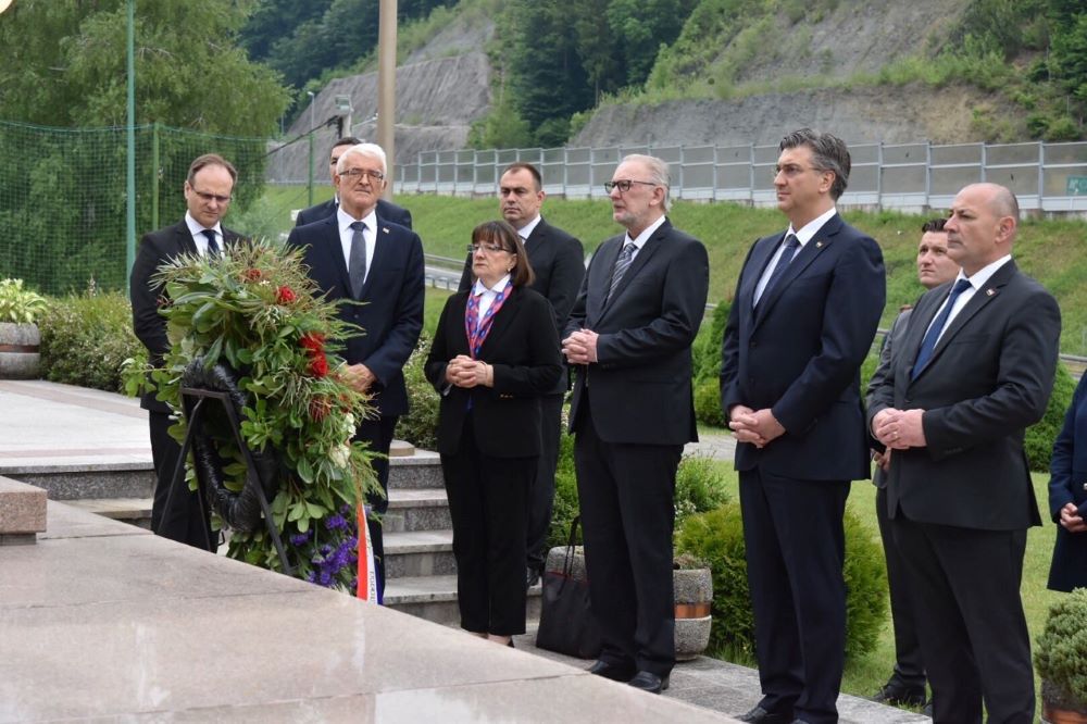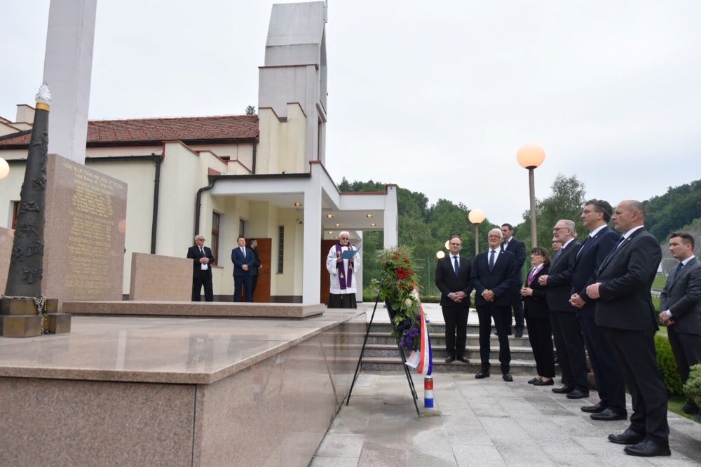 Uz predsjednika Vlade bili su potpredsjednik Vlade i ministar unutarnjih poslova Davor Božinović, ministar hrvatskih branitelja Tomo Medved, državna tajnica u Ministarstvu vanjskih i europskih poslova Zdravka Bušić, predstojnik ureda predsjednika Vlade Zvonimir Frka-Petešić te posebni savjetnik za društvena pitanja akademik Zvonko Kusić. Prošli tjedan, u Hrvatskoj i diljem Europe, obilježena je 75. obljetnica kraja Drugog svjetskog rata i pobjede nad fašizmom, što je označilo kraj neviđenim ratnim strahotama i fašističkim zločinima, u prvom redu Holokaustu. Dok je kraj rata u zapadnoj Europi otvorio put uspostavi demokracije, pomirbi, gospodarskom oporavku i ujedinjenju Europe, u srednjoj i istočnoj Europi su uspostavljeni totalitarni komunistički režimi koji će slom doživjeti tek s padom Berlinskog zida. K tome su u Hrvatskoj nakon sloma NDH i kraja Drugog svjetskog rata počinjeni strašni zločini u kojima su smaknuti deseci tisuća ljudi – razoružanih vojnika poraženih snaga, ali i velik broj hrvatskih civila koji su bježali od uspostave komunističkog režima. Premda je jasno da je zahvaljujući antifašističkom pokretu i otporu nacizmu Hrvatska iz Drugog svjetskog rata izišla kao pobjednica, poratni masovni zločini komunističkog režima ostaju bolno i traumatično razdoblje hrvatske povijesti, te se 75 godina kasnije prisjećamo svih ljudskih žrtava.