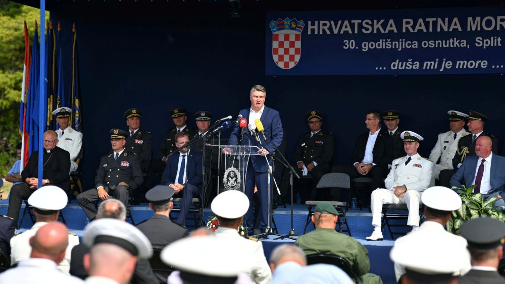 „Svaka država ima ono nešto po čemu je baš to što jest i bez čega nije to što jest. To je more, cijelo more. More je jednako Hrvatska. Naravno, i kontinent, i Zagora, i sjever jednako je Hrvatska, ali more i to svaka stopa, pedalj mora, od Savudrije do Prevlake, tih tisuću milja to je ono što je Hrvatska“, rekao je predsjednik Milanović u prigodnom obraćanju na svečanosti povodom Dana Hrvatske mornarice.