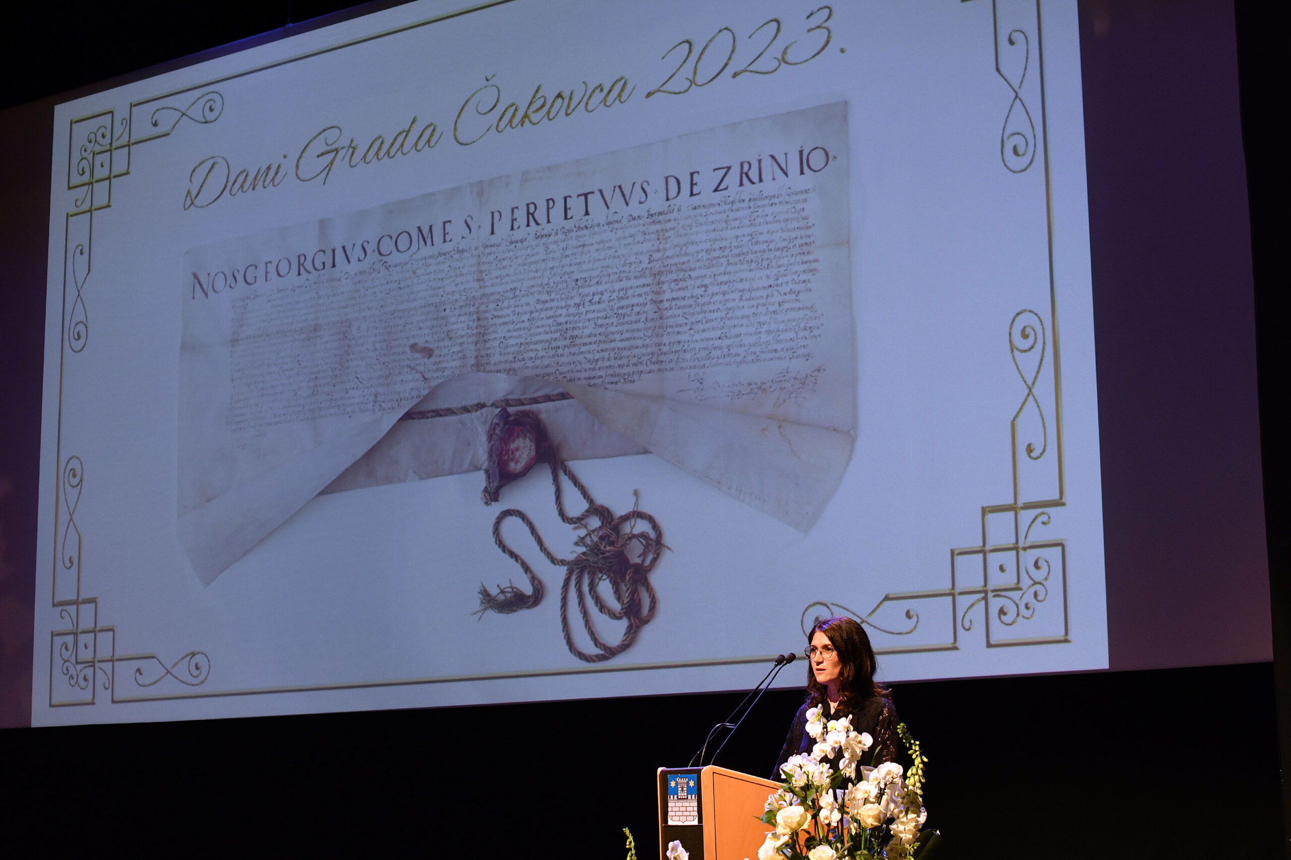 “Hvala svima koji ste i u proteklih godinu dana, svojim radom i djelovanjem naš Grad činili boljim te širom Hrvatske i Europe pronosili njegovo ime. Izuzetno je mnogo pojedinaca i udruga koje godinama neumorno rade, obogaćuju društveni život te svima nama otvaraju nove vidike. Zahvaljujući njima Čakovec je i grad sporta, i grad kulture, i grad djece i mladih, grad svih svojih građana. Najviša gradska priznanja i nagrade danas su dobili neki od njih, no sigurna sam da će one biti poticaj svim udrugama i pojedincima s čakovečkog područja, od Novog Sela na Dravi do Slemenica, od Štefanca do Krištanovca, da u narednih godinu dana budu još aktivniji u obogaćivanju života svih nas te još uspješniji na natjecanjima i smotrama”, rekla je u svom govoru čakovečka gradonačelnica i naglasila kako će se uspjeh rada i politika mjeriti brojem novorođene djece, pojedinaca i obitelji koje će se vratiti iz inozemstva te novih stanovnika koji su na Čakovec izabrali kao mjesto u kojem će raditi i živjeti.
