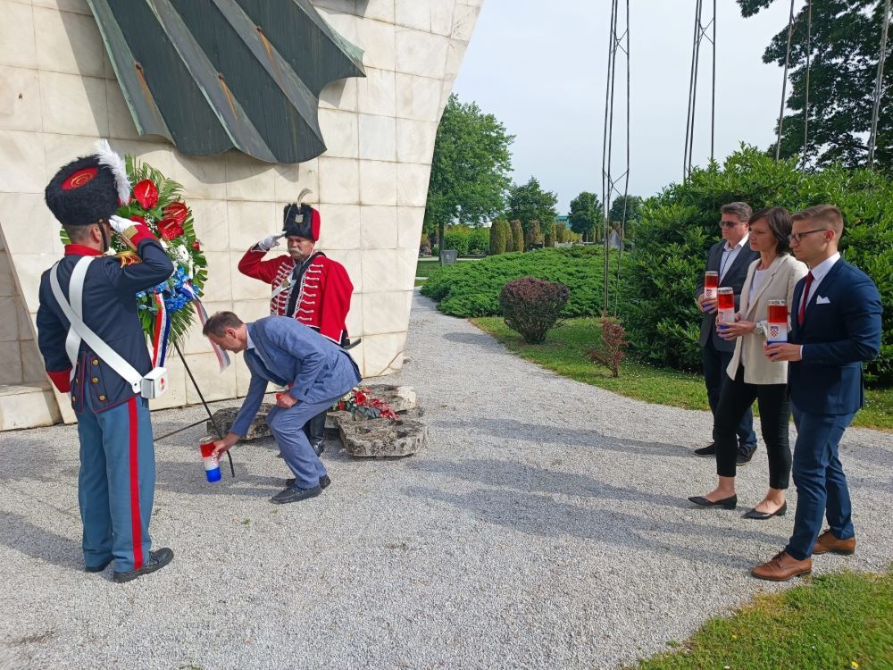 Tako su zajednički vijenac Grada Varaždina i Varaždinske županije u pratnji Husarske garde Varaždinske županije i Varaždinske građanske garde položili gradonačelnik Varaždina dr.sc. Neven Bosilj, predsjednik Gradskog vijeća Lovro Lukavečki i zamjenik gradonačelnika Miroslav Marković, dok je Varaždinsku županiju predstavljala Ljubica Božić, pročelnica Upravnog odjela za zdravstvo, socijalnu skrb, civilno društvo i hrvatske branitelje.