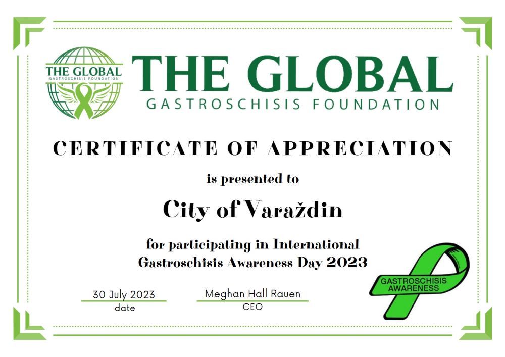 Grad Varaždin uz još tridesetak hrvatskih gradova i ove se godine priključuje obilježavanju Dana svjesnosti o gastroshizi, vrlo rijetke urođene mane. Tim povodom će u nedjelju, 30. srpnja 2023. godine, Hrvatsko narodno kazalište u Varaždinu od 21 sat do ponoći biti osvijetljeno zelenom bojom.
